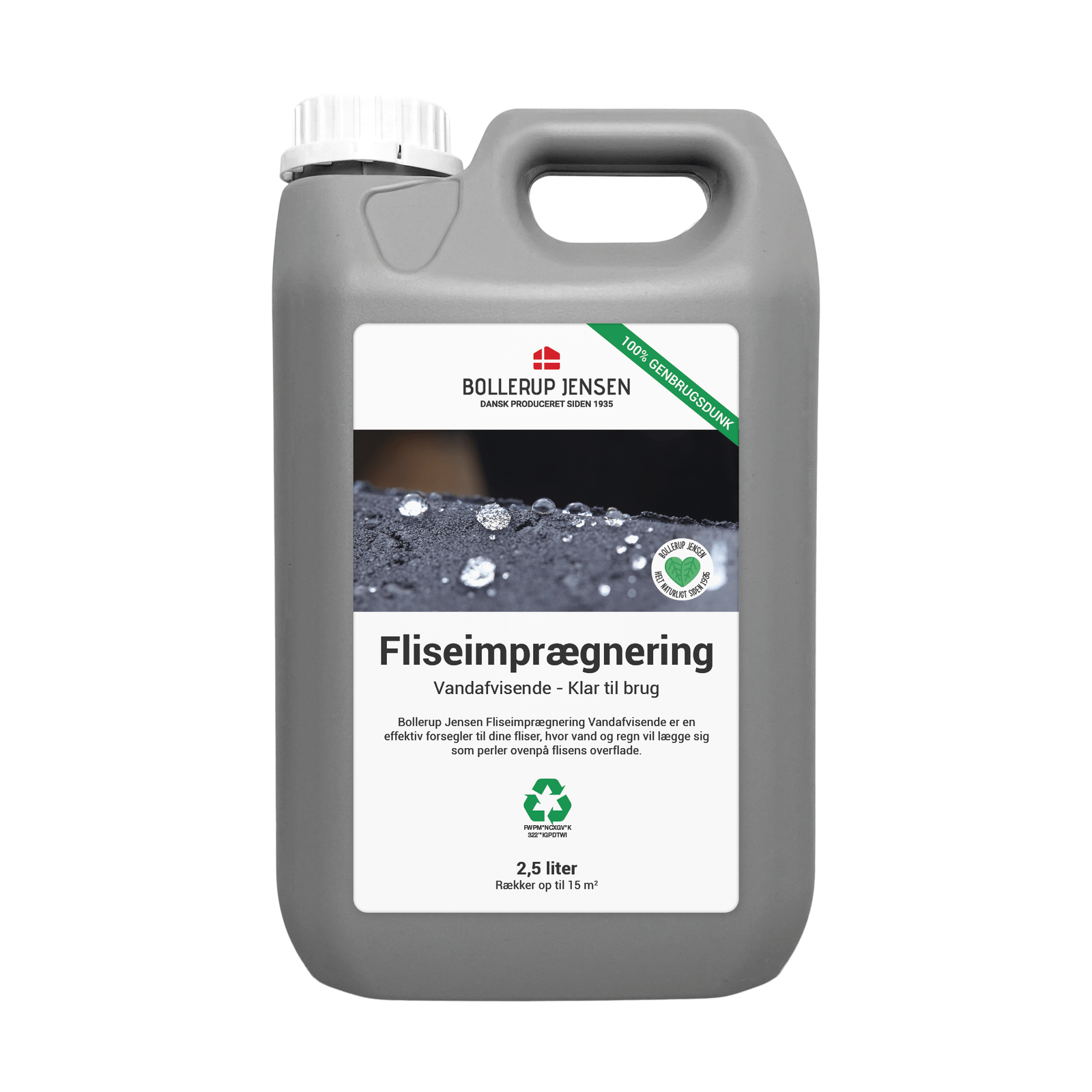 - Vandbaseret imprægnering: Dette er en miljøvenlig løsning, som er let at anvende og trænger hurtigt ind i fliserne. Vandbaserede produkter tørrer hurtigt og efterlader ingen rester.